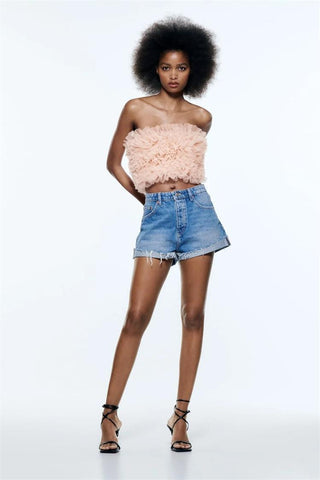 Barbie Sweet hot sexy new backless silk mesh knitted top halter shirt