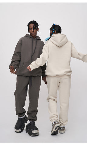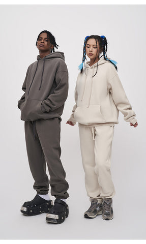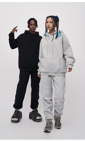 380GSolid color hoodie and sweatpants hoodie set with fleece and thick hoodie 11color