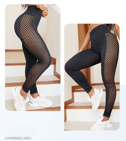High waist hips hollow out mesh fitness pants sports leggings yoga wear 6 colors