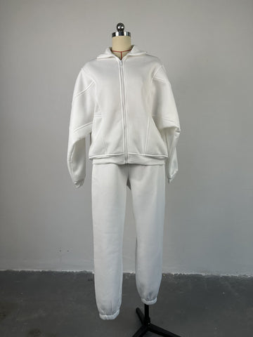 Fleece stand collar long sleeved hoodie cardigan leg trousers casual suit 3color