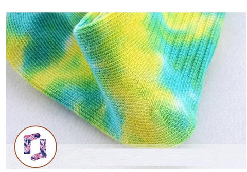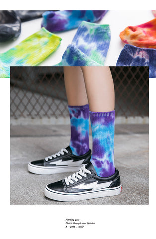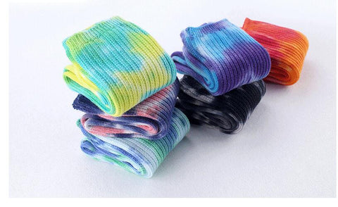 Double needle pile pile tie dyed medium tube tide socks women 6 colors MOQ:10PCS