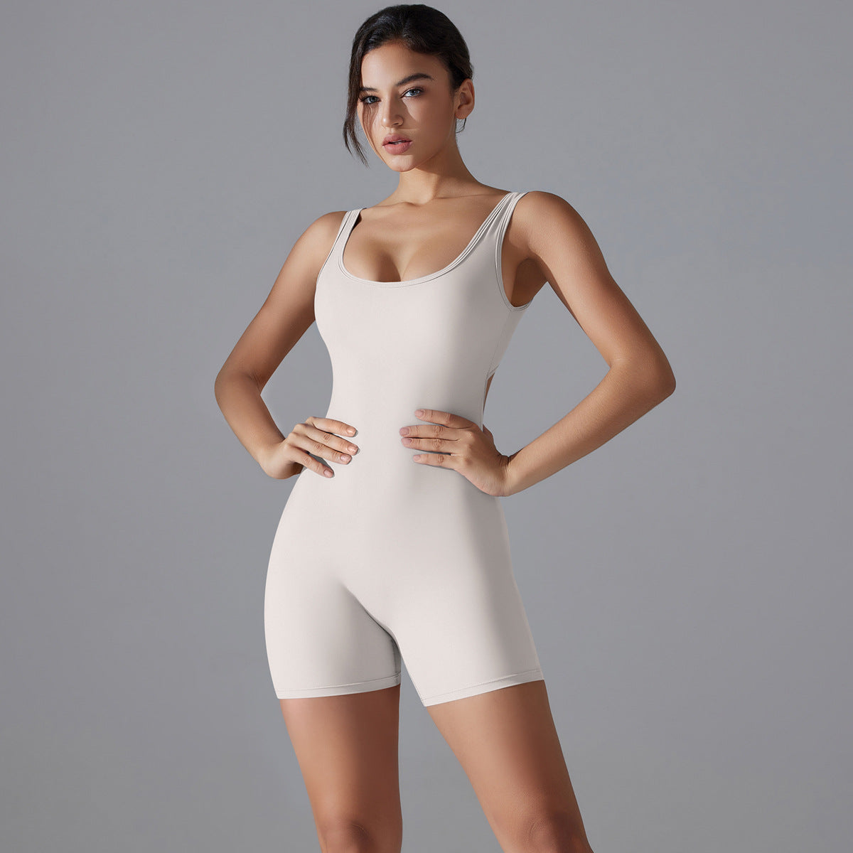 Plus size double - sided nylon nude high - elastic V - waist tight shorts one-piece yoga suit