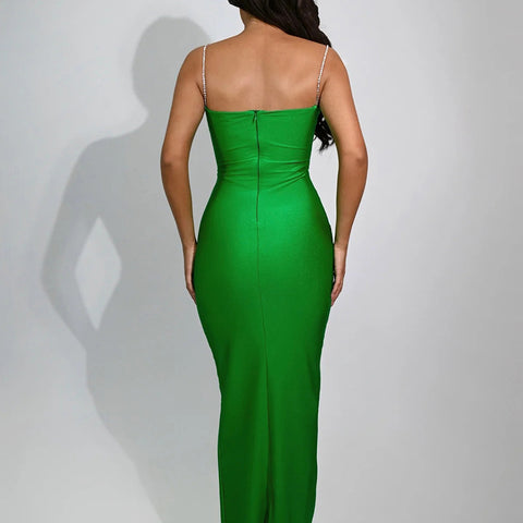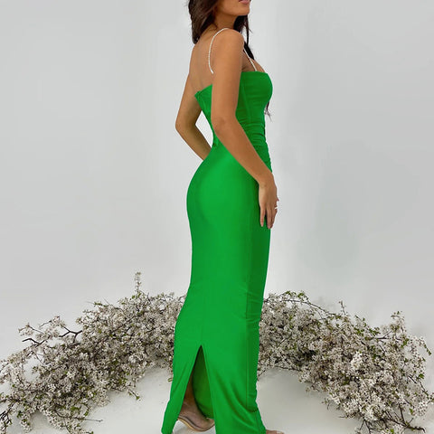 Dress temperament sexy bright diamond halter splicing high waist slim dress 3 colors