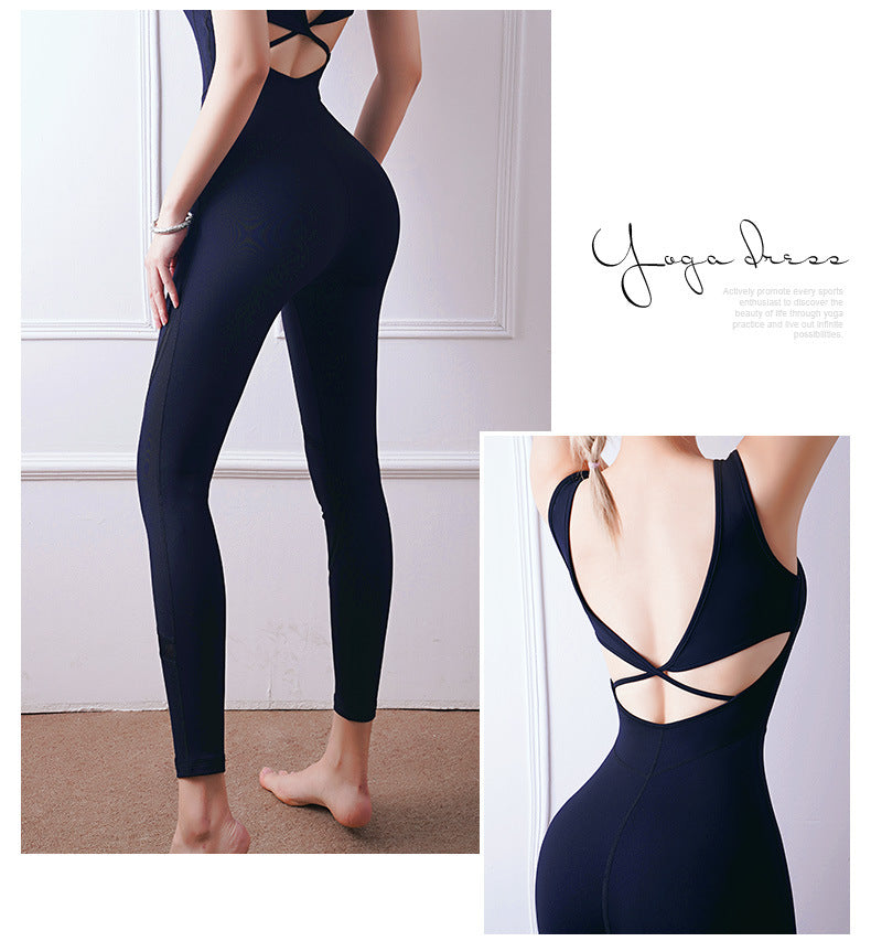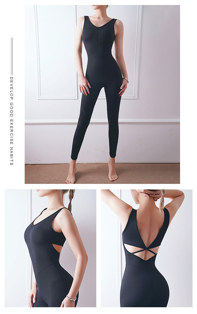 Sexy mesh patchwork yoga jumpsuit