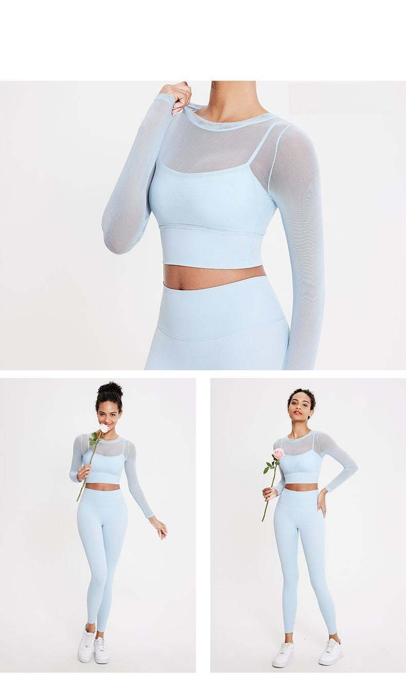 Sexy mesh round neck yoga wear long sleeve quick-drying sports bra