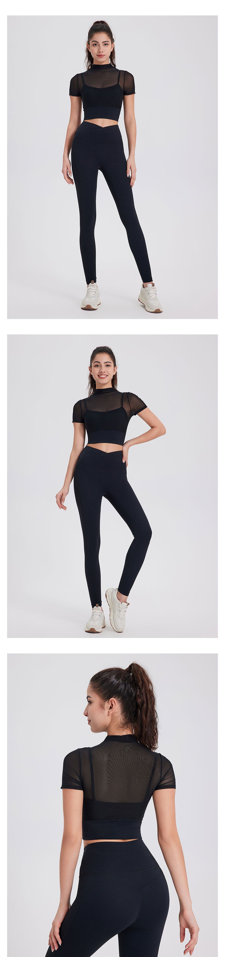 Sexy mesh yoga dress Short sleeve running quick-drying sports bra with breast pad