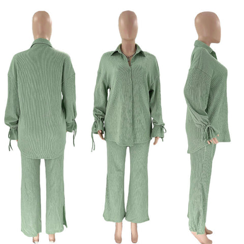 Solid color lapel single breasted long sleeve lace-up top Fashion pantsuit 7 colors