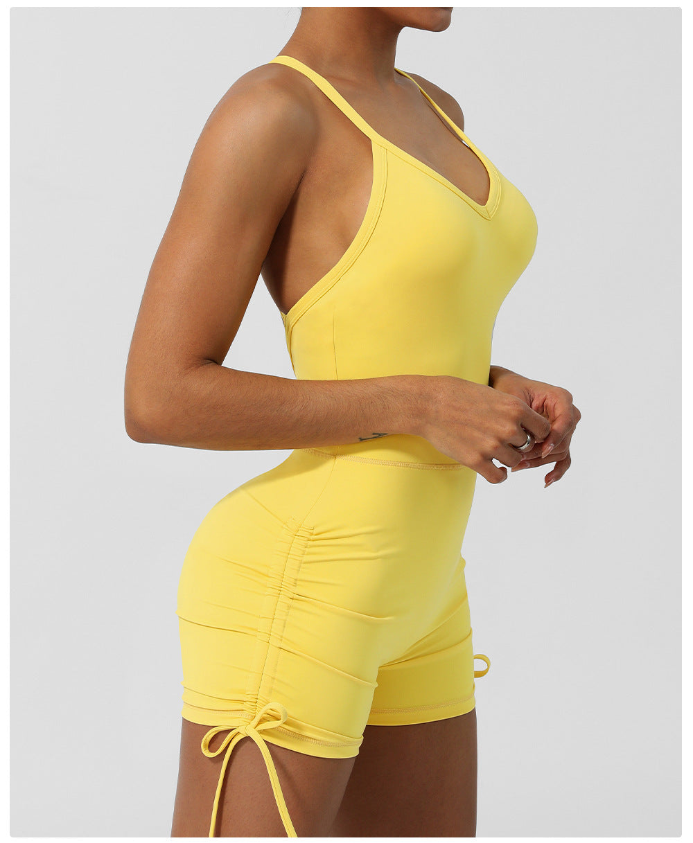 V-neck shorts Sleeveless jumpsuit with chest pad 5colors