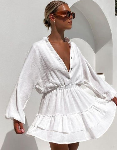 Long sleeve dress temperament V-neck chiffon skirt high waist slimming A-line skirt