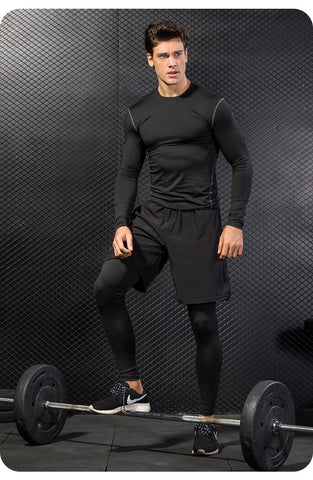 Tight-fitting long sleeve fake two pants Quick dry wicking 2 sets 1019+7010 5 colors