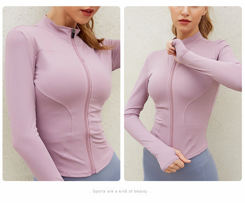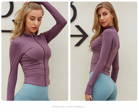 Zippered long-sleeved sports coat quick-drying slimming yoga suit running fitness sports top for women